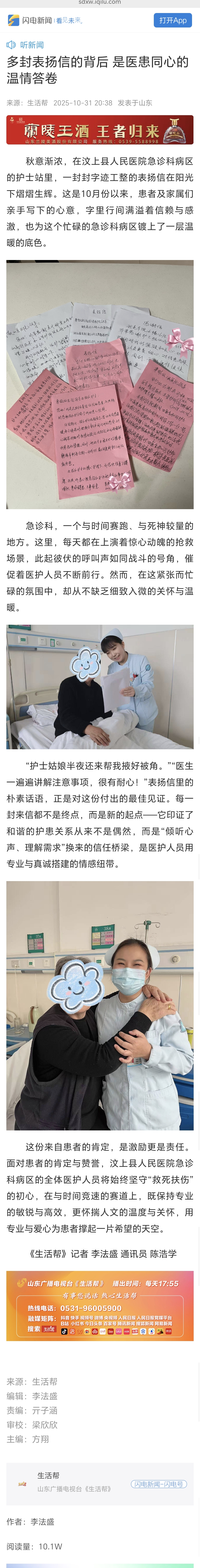 媒体看汶医 | 闪电新闻:多封表扬信的背后 是医患同心的温情答卷