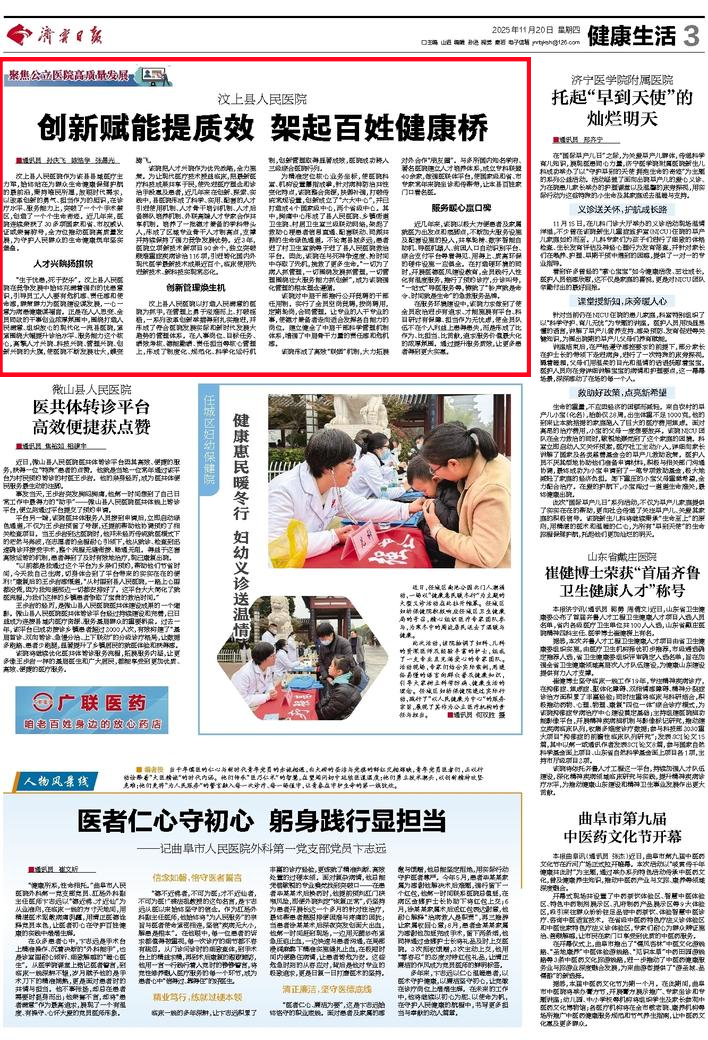 媒体看汶医 | 济宁日报:汶上县人民医院创新赋能提质效 架起百姓健康桥